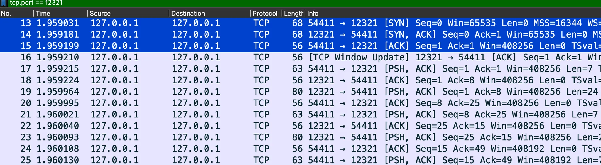 53982 -> 12321 [SYN] : `Client` "TCP 통신 시작하겠습니다."
