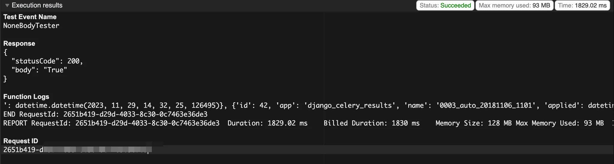 Body는 {} 값으로 비워두고 호출해도 되도록 PoC를 작성했기 때문에, 테스트에는 별도의 설정이 필요없습니다. 아무런 Test로 설정하여 구동하게 되면 아래와 같이 이슈 없이 실행되는 부분을 확인할 수 있었습니다.