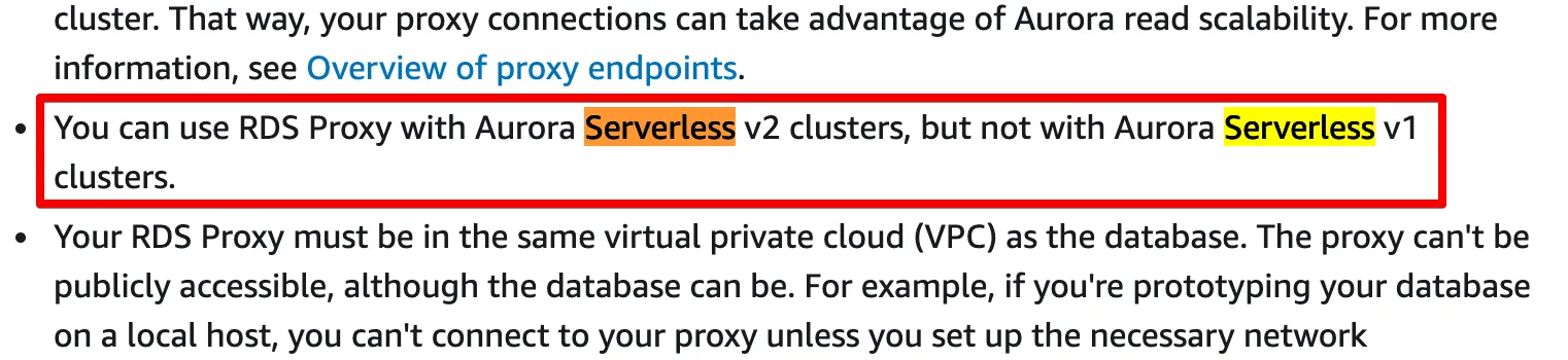 RDS Database instance는 Serverless V2도 가능하지만, V1은 불가능합니다.