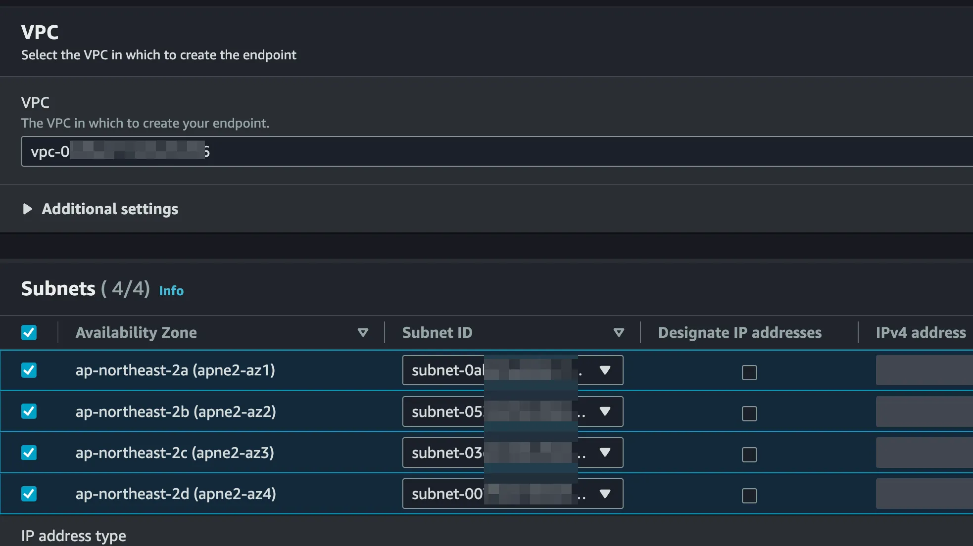 생성할 endpoint와 VPC를 연결해주고, subnet을 연결해줍니다.