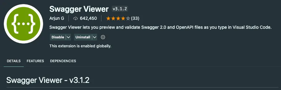 Visual Studio Code에서 Swagger Viewer라는 이름의 Extension을 검색하여 인스톨 해주도록 합니다. Swagger Viewer는 별도로 서버 구성 없이 yaml 파일로도 HTML을 생성해주는 유효한 툴 입니다.