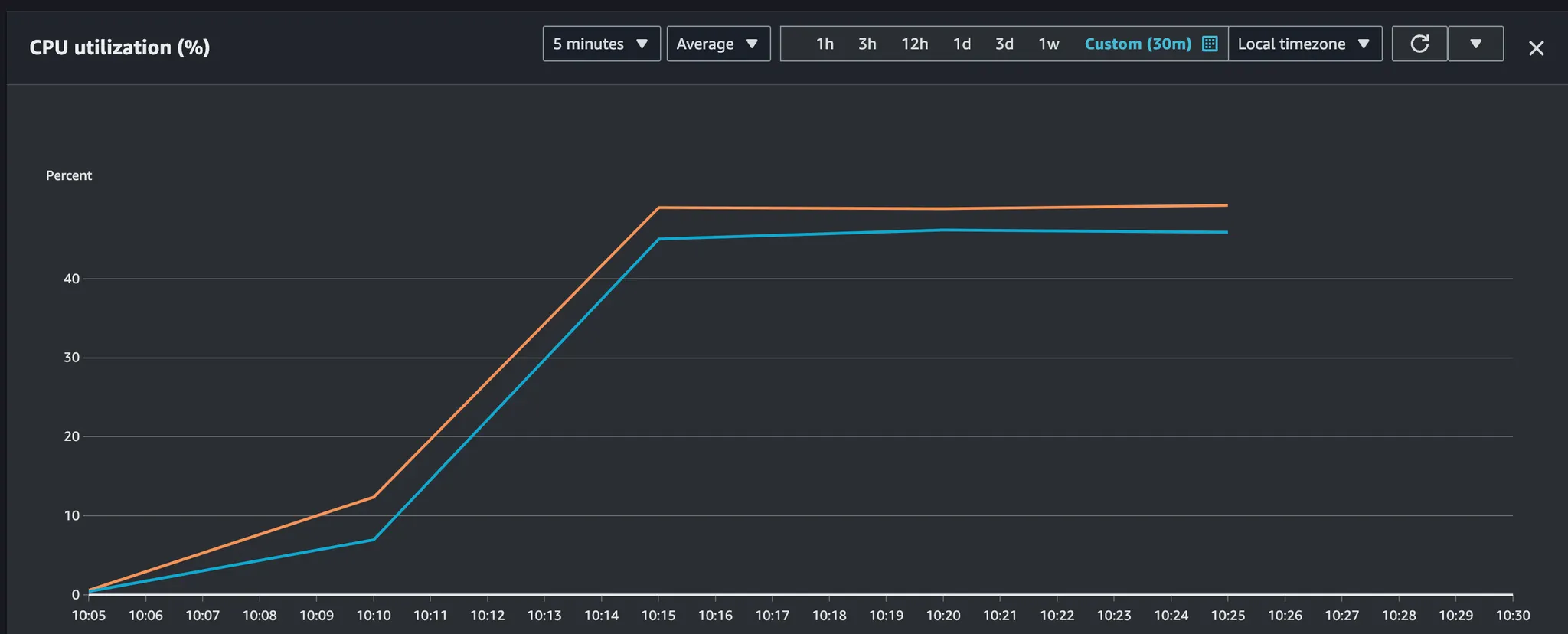 AWS CPU : MAXIMUM 49% ~ 50%