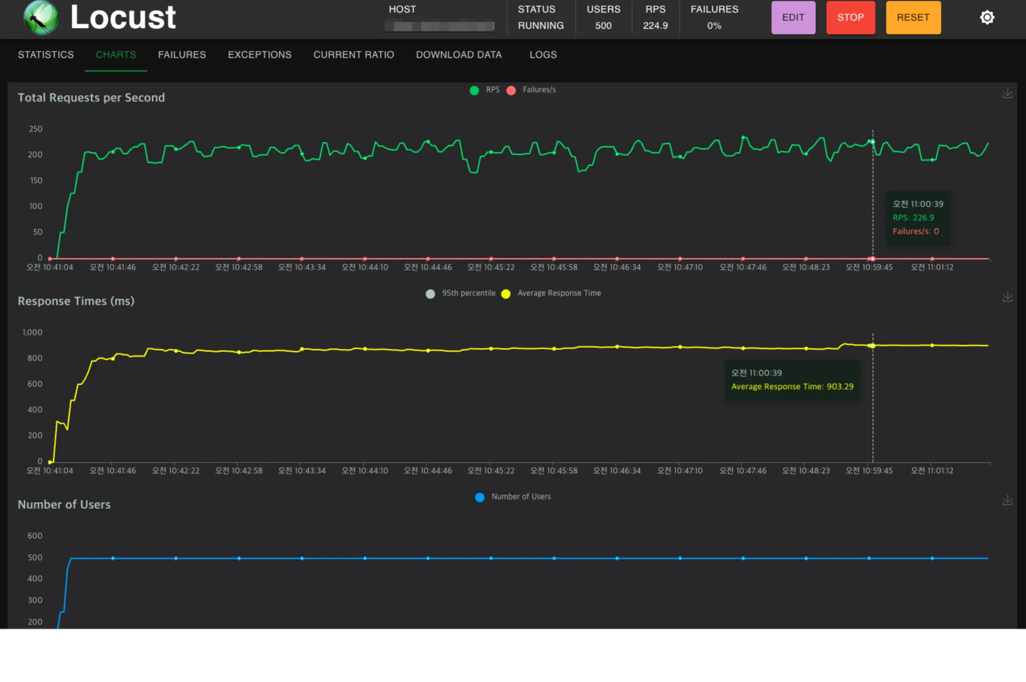 Locust result : Response 860ms ~ 910ms