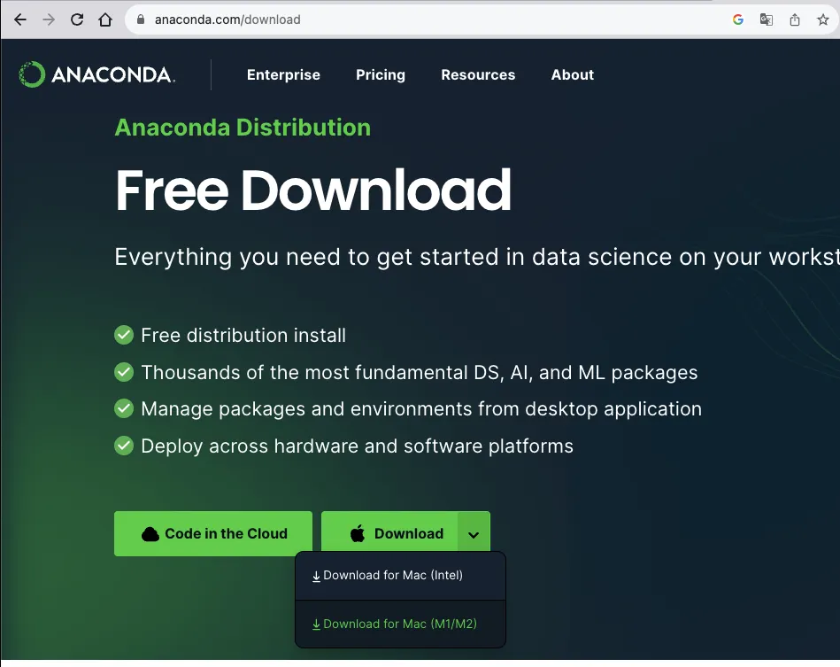 홈페이지에서 설치할 경우 아래와 같은 이미지처럼 M1/M2를 별도로 다운로드 할 수 있도록 링크를 제공합니다. 해당 링크로 들어갈 경우 arm64를 다운로드 할 수 있습니다.