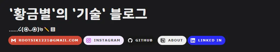 메인 페이지에서 가장 상단에 있는 메일과 SNS들에 대해서는 HTML 코드를 삽입하였습니다.