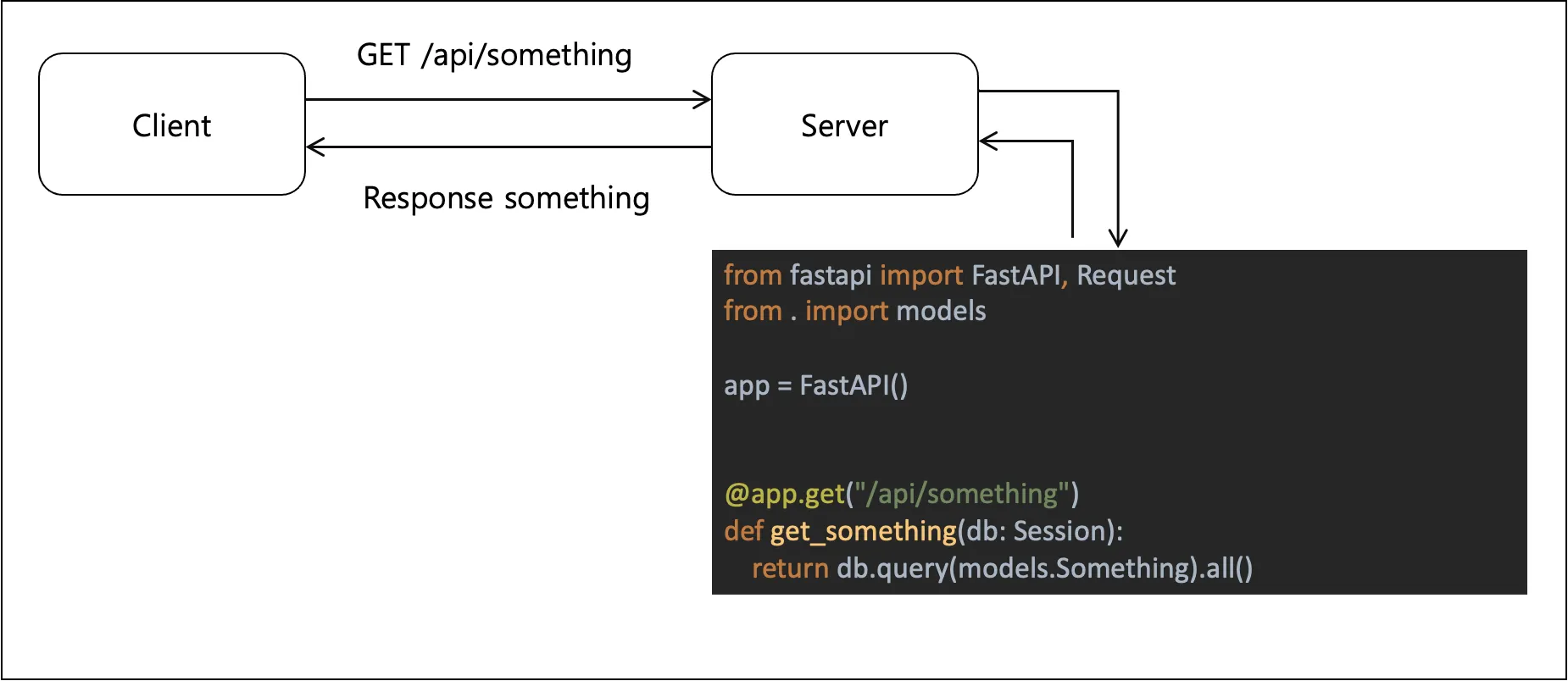 Client(이용자)가 서버의 Database와 상호작용하여 CRUD 기능을 수행하고자 할 때 이를 위한 기능을 제공해주어야 합니다. 이를 위해 API와 같은 인터페이스가 제공될 수 있으며, 이용자가 제공된 API를 인가된 방법으로 사용하였을 경우 HTTP 프로토콜을 통해 서버의 Database와 상호작용이 가능합니다.